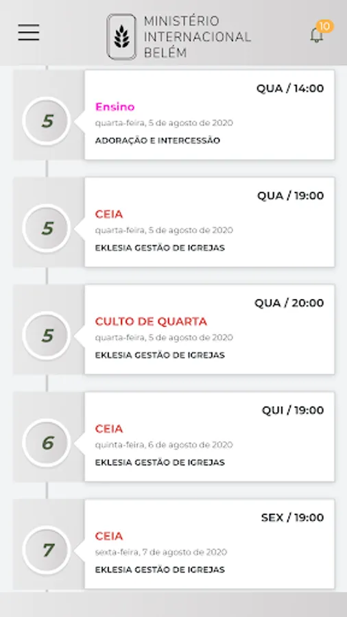 Agenda "Agenda": See a complete calendar of Cults, Events, your Scale in Church Ministries;
