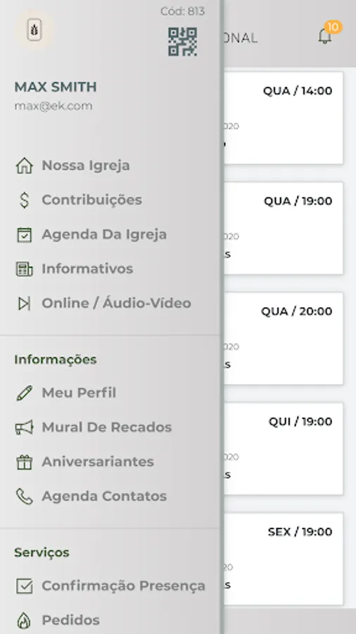 ◗ In the item "My Profile" it is possible to update your registration data in the Church;