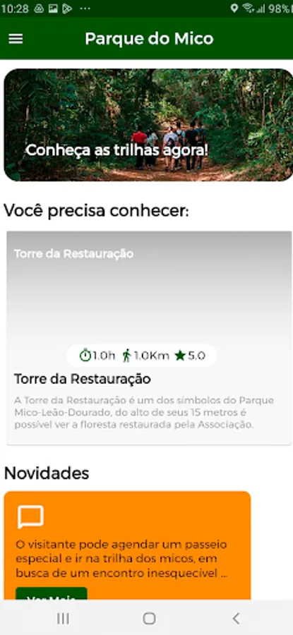The Mico-Leão-Dourado Ecological Park is a unique park! Here, the main star is the golden lion tamarin, a species that is a symbol of nature conservation in Brazil and in the world. All attractions are related to its habitat, the Atlantic Forest and conservation actions to save the species from the risk of extinction. There are several options for trails, viewpoints and opportunities to contemplate nature, in addition to a special tour that allows you to see the golden lion tamarin in the forest. Download the App and get to know Parque do Mico!