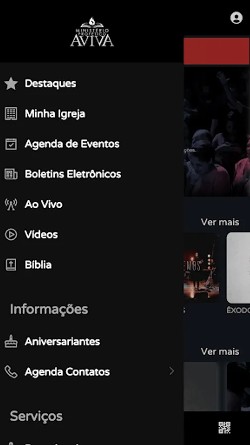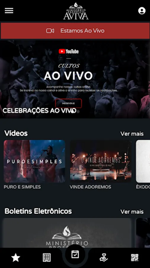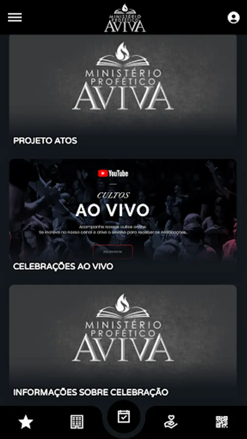 🎶 Contents (Audio/Video): Allows you to view and listen to Church content available on the App;