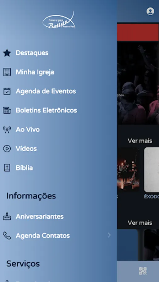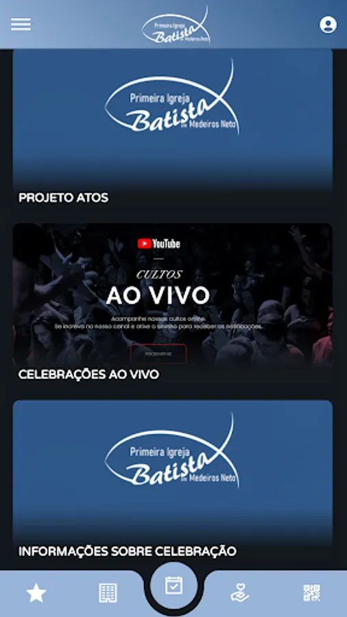 🎶 Contents (Audio/Video): Allows you to view and listen to Church content available on the App;