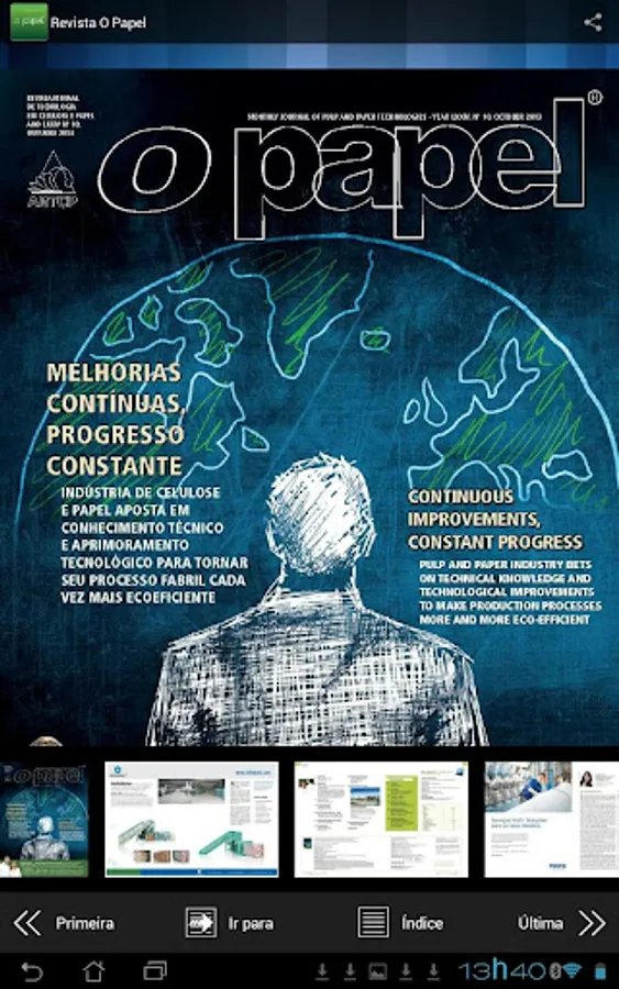 The digital edition of The Paper Magazine Editorial includes extra content such as newsletters, articles, columns, photo gallery and tools to save and share material among friends and through social networks, plus video, audio, interactive advertisements and links that refer to Site www.revistaopapel.org.br