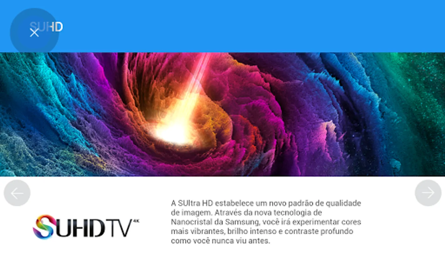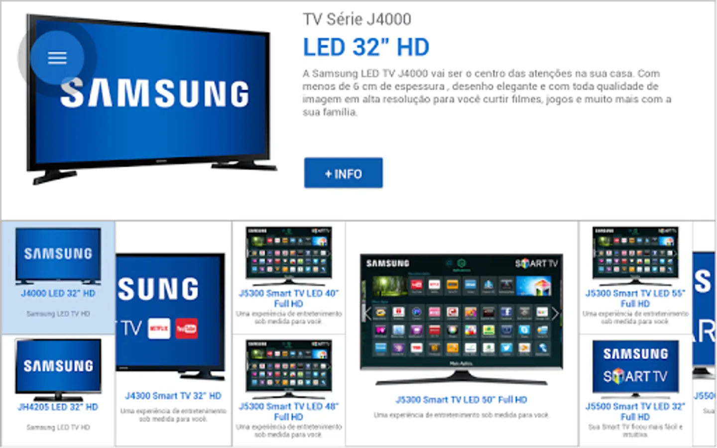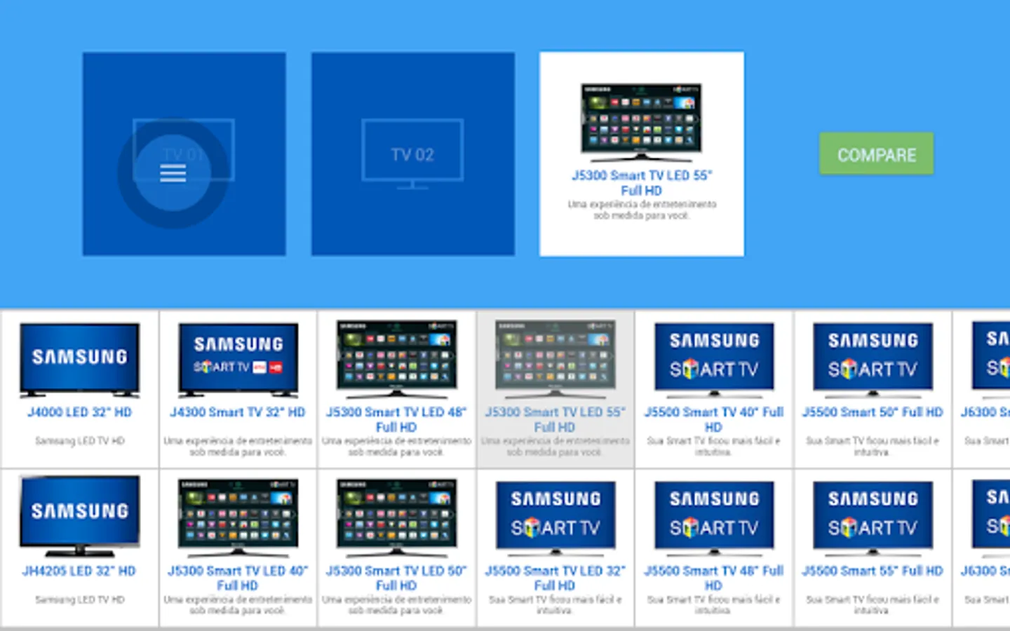 The application has a product portfolio with detailed information about the models, specifications and features available from the TV's line in 2015.