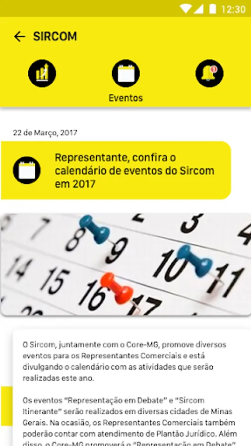 With the application of the Union of Belo Horizonte Commercial Representatives (SIRCOM) will be possible to have access to important news, benefits and information on the union's schedule of events.