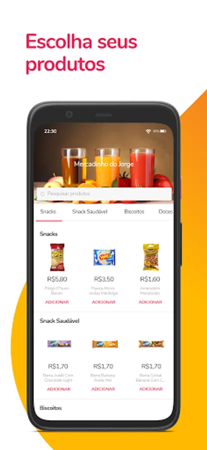 Whether to have a snack or guarantee your lunch, you can use the application to place your orders with pick up on site, in addition to having the convenience of receiving at the address you want!