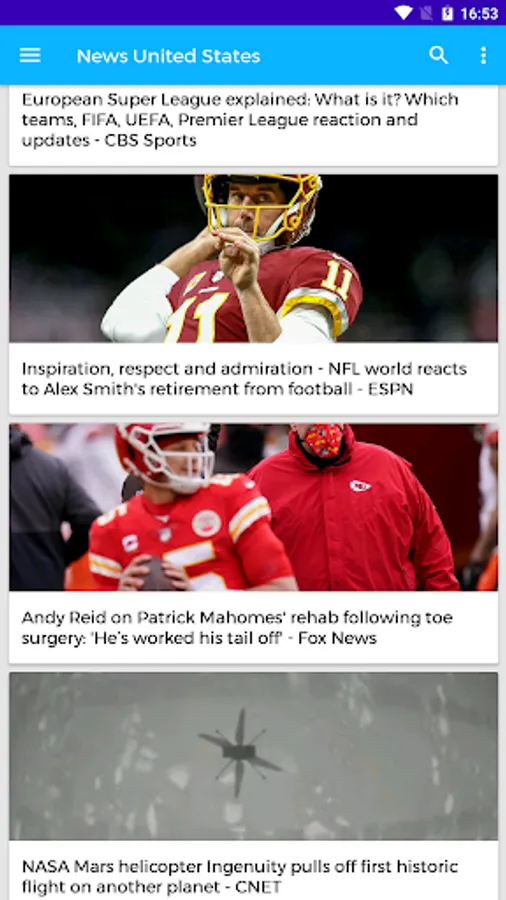 See the latest news organized by categories: general, business, entertainment, health, science, sports, technology, politics.