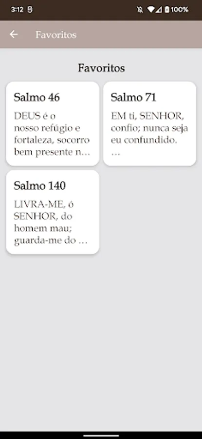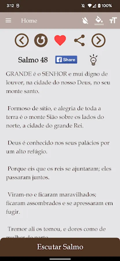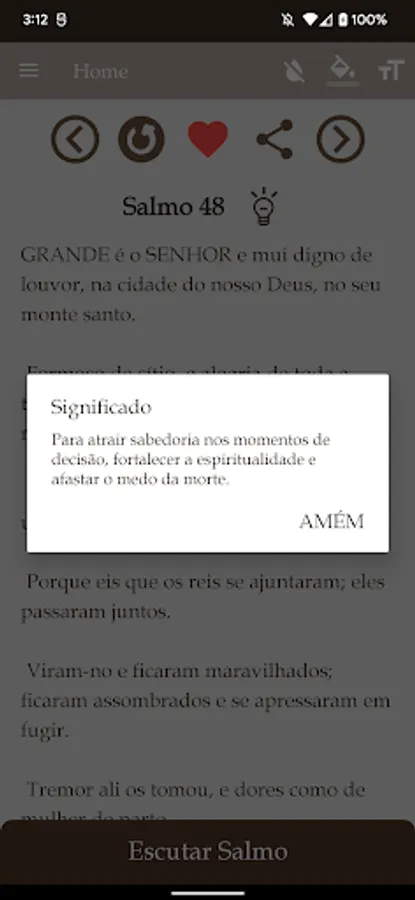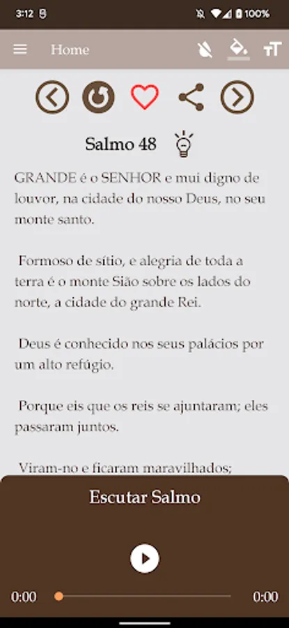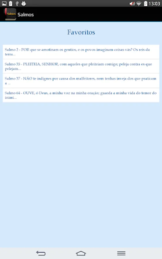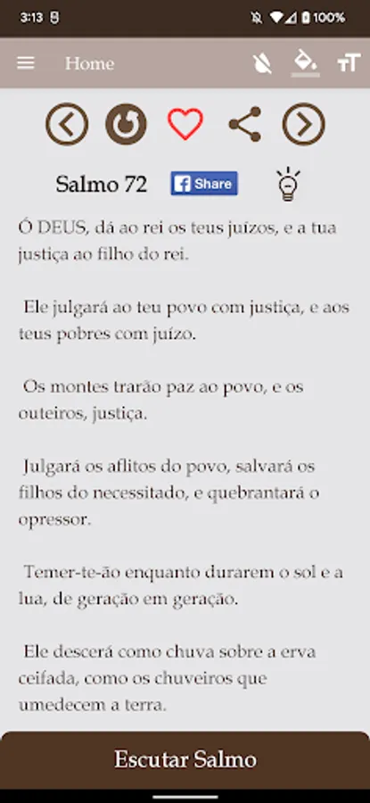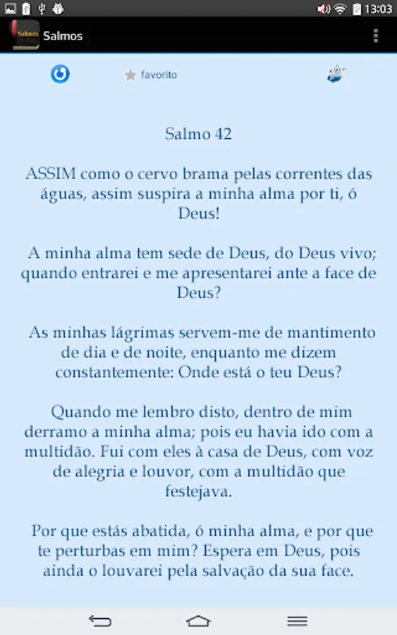 This app is for you who likes to open the Bible without choosing the page and take a good lesson from the Psalm that appears!