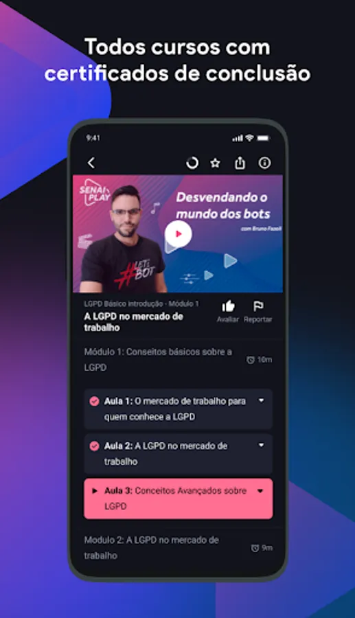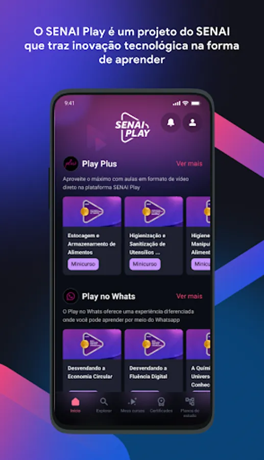 The SENAI Play application is a SENAI project that brings technological innovation in the way of learning. Through knowledge pills, we disseminate content through Minicourses and Microcourses in video, podcast and whatsapp formats, aimed at various segments of the industrial area.