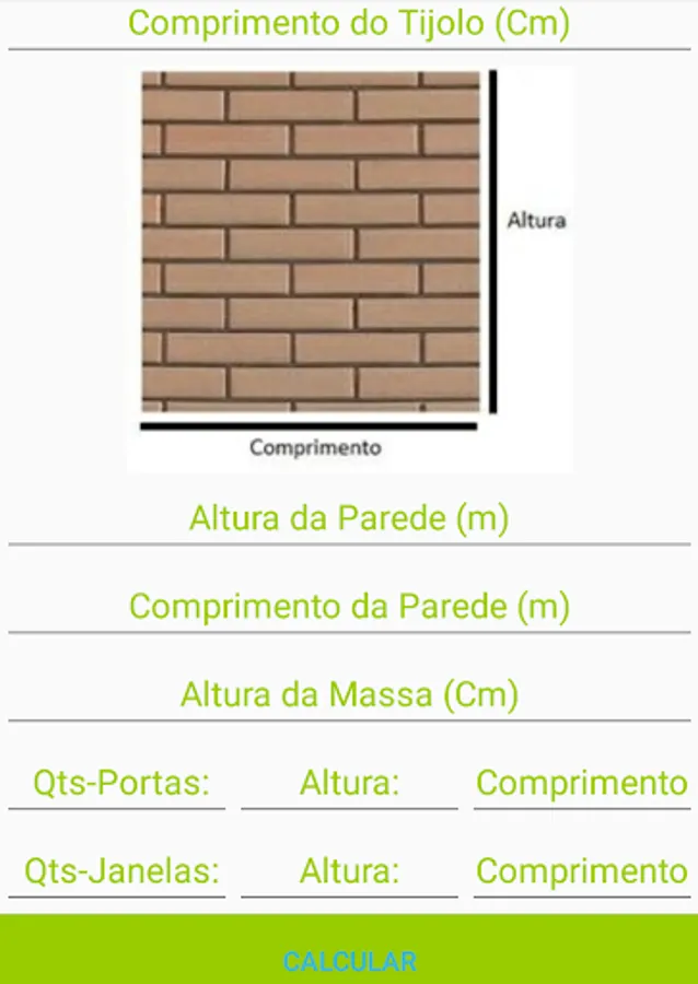 What charges the most in construction and waste. Know the amount of materials that will be spent on the work and an important step to the success of its construction. Calc_Tijolo will help you calculate the amount of bricks that will be spent on your work.