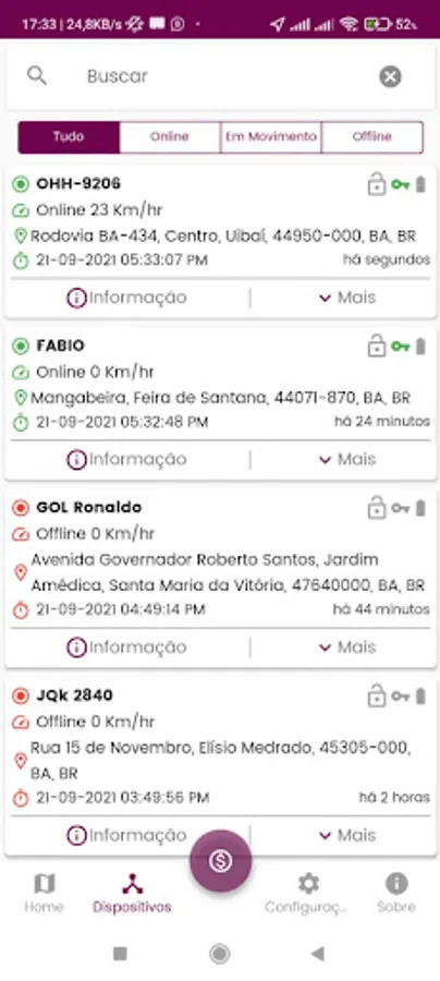 Sinal GPS is an application for the user to track their vehicles and/or Android phones registered on the Sinal GPS platform.