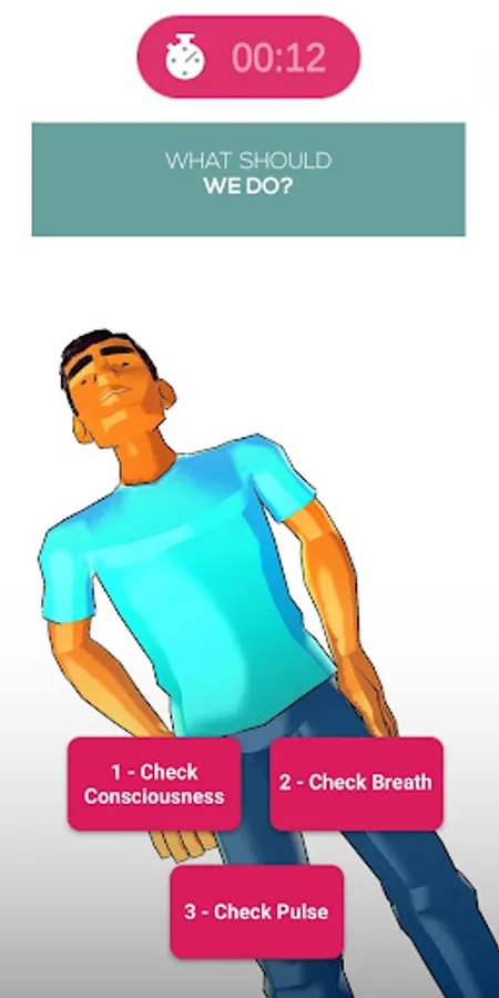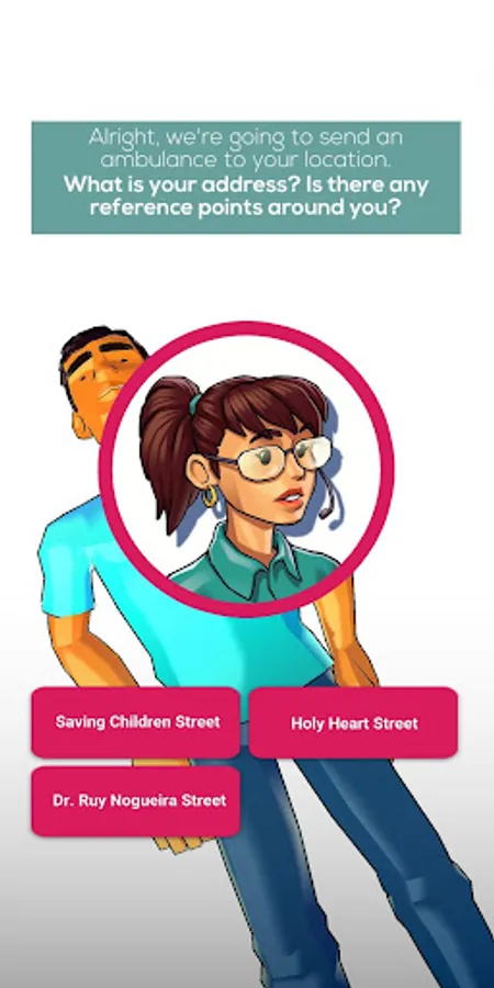 Using as a background the eLearning concepts adopted by the WHO’S Health Academy program, this app was developed to be a tool to INSTRUCT the recognition of a cardiac arrest and the first response to a CPR. It was basically developed for lay people, either adults or school children, based on the advantages of the educational process conventionally called “gamification”, with emphasis on interaction and feedback. We tried to show different random scenarios, as well as use elements to motivate and challenge the players and focus their attention in order to learn the subject. One of the game’s functionality is the non-progression of phases, in case the players choose a wrong answer, so that they memorize the correct sequence of a CPR protocol. The app is not aimed at assessing the learning process of the topic, but it provides a score system for players, in case they choose to check their performance. Although the game is NOT INTENDED TO EVALUATE KNOWLEDGE, it has a score system so that the learners can check their performance.