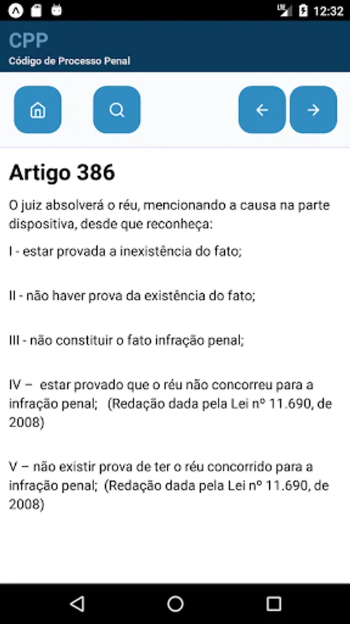 Reference to the Code of Criminal Procedure for professionals and students in the area of Law, with quick access to articles.