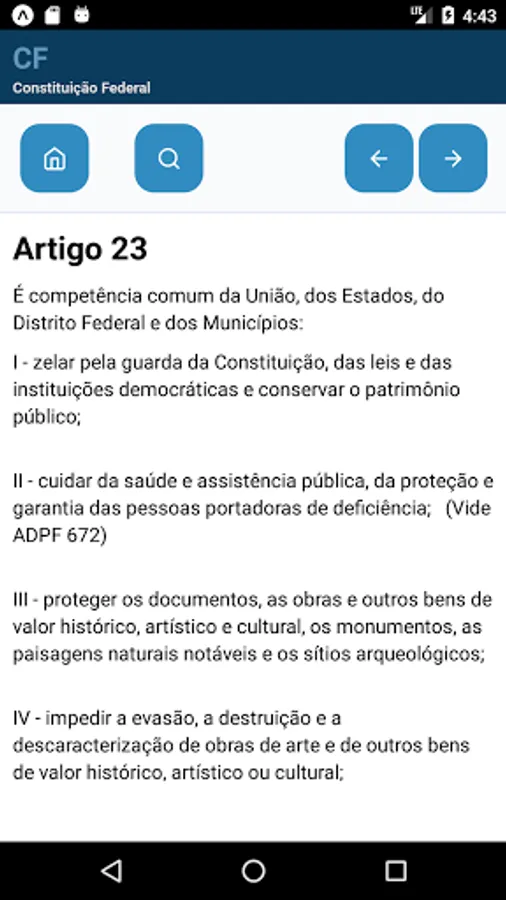 Reference of the Federal Constitution of Brazil for professionals and students in the area of Law, with quick access to articles.