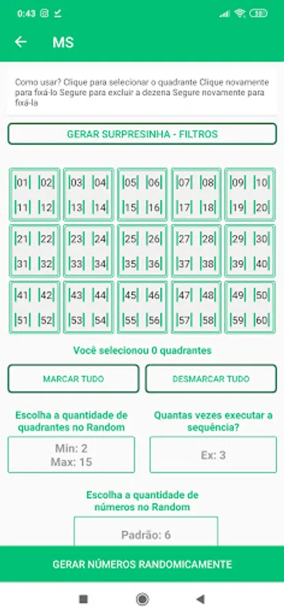 This application is developed completely independently, with no link or responsibility on the part of Caixa Econômica Federal. Information on the results of the draws and products is obtained from the Caixa Econômica Federal website and reproduced in our application. Our Application does not place bets, it only checks the hits of the cards generated within the application.