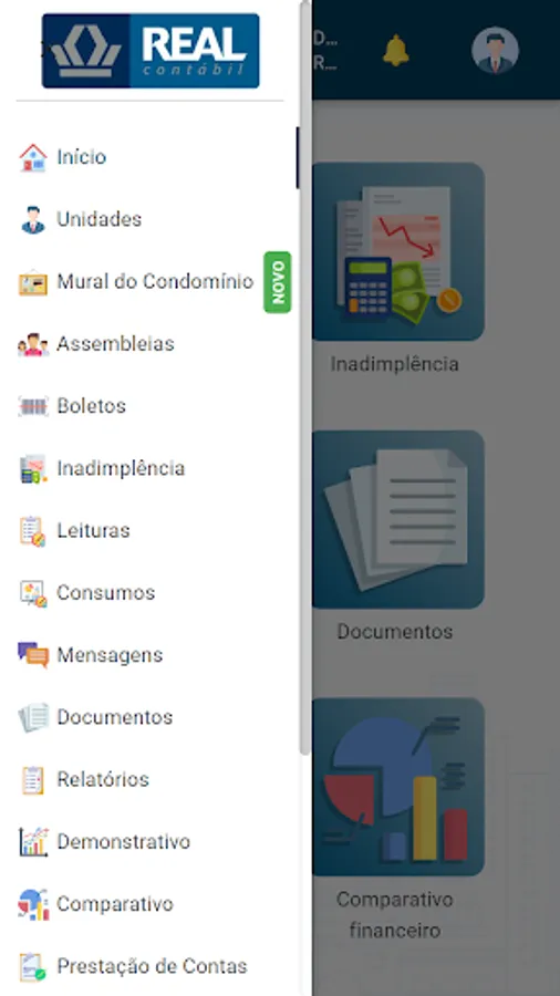 The Real Contábil Condominium App is a tool that brings the condominium owner closer to his administrator and liquidator.