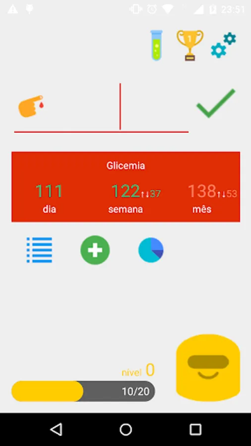 Gluc is a game / application to teach children (7-14 years) to live with Type 1 Diabetes Mellitus at the beginning of treatment. For this, the daily blood glucose levels, carbohydrates and insulin is maintained.
