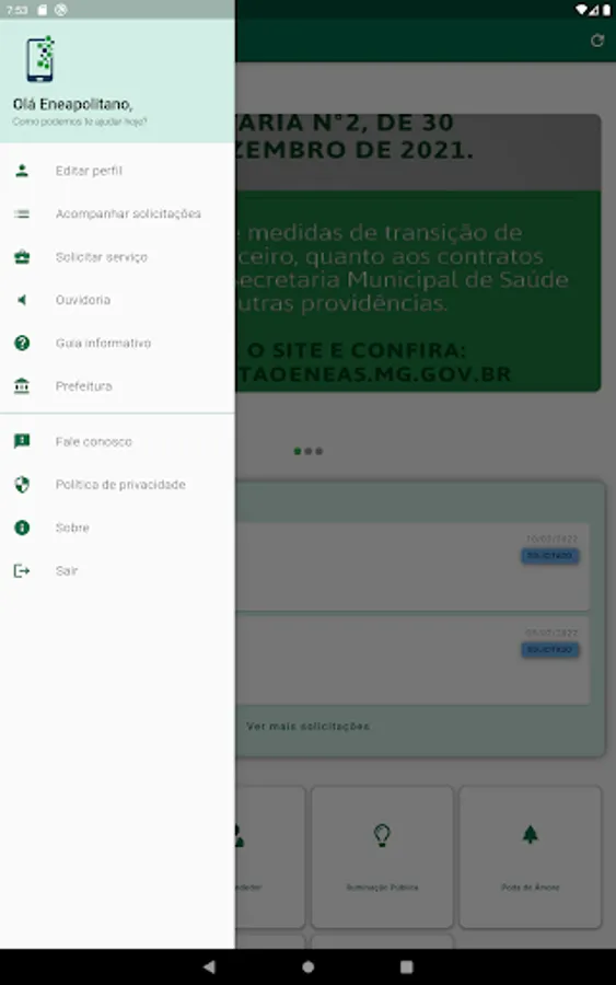 The Municipality of Capitão Enéas provides the Smart City application to connect Eneapolitans with the city hall and centralize the consumption of public services. Currently, the application includes the following services: