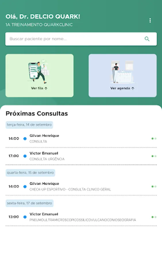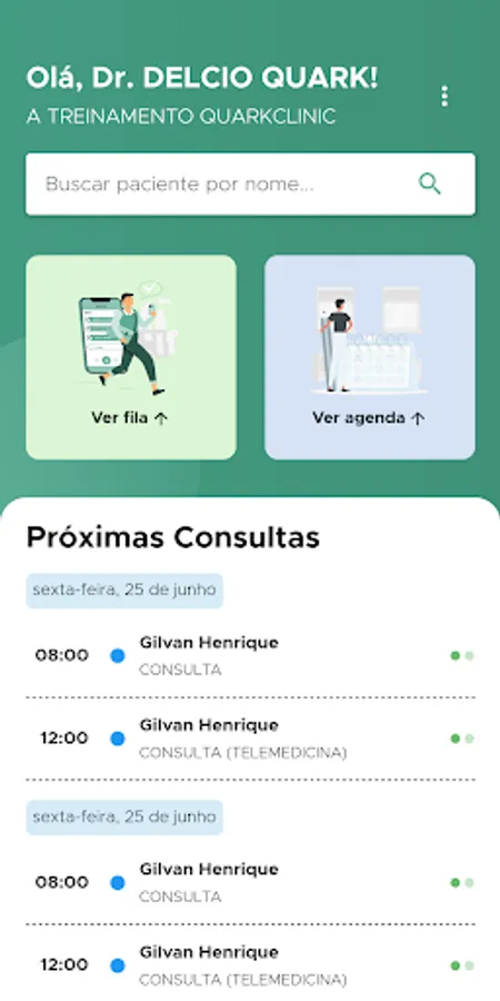 Thinking about making the doctor's life easier, we created the QuarkClinic Medical App, making your journey more digital and intuitive, with the survey of your next appointments, appointments scheduled by schedule, patient search and access to your information in the palm of your hand, in addition to access to the waiting list of your office, being able to call the patient at the window using your smartphone.