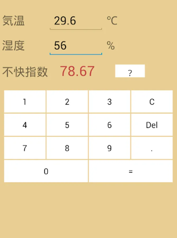 Temperature, and enter the humidity press the "=" button, you will see the discomfort index.