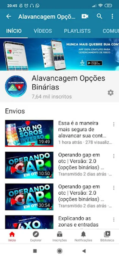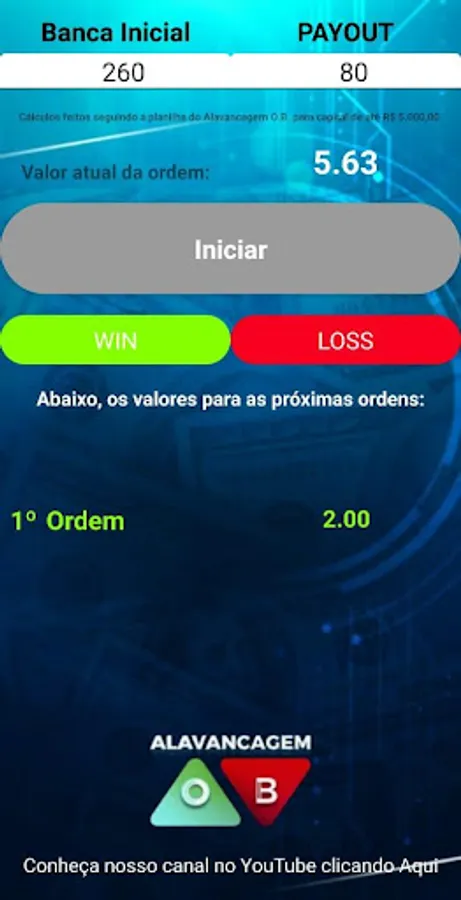 Risk management and management, based on the spreadsheet for the account management of the team LEVERAGE BINARY OPTIONS (Felipe Almeida Lima);