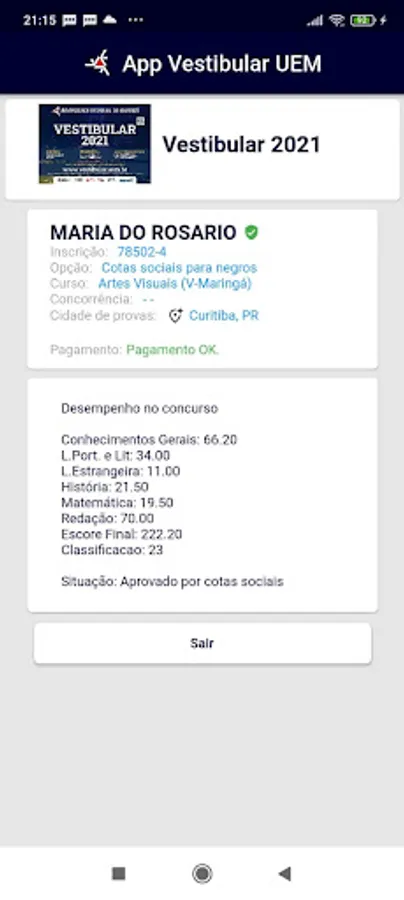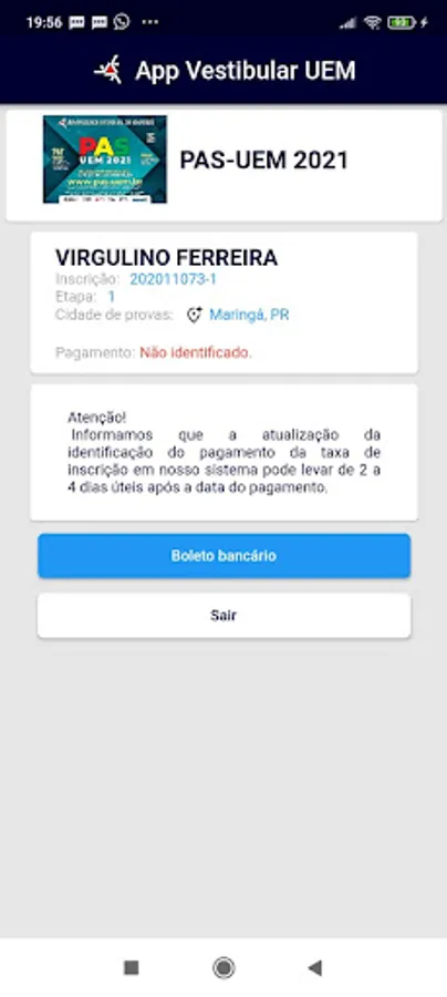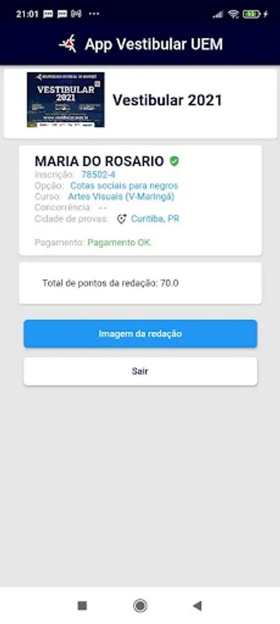 The App Vestibular UEM is an application developed by the Unified Vestibular Commission (CVU) of the State University of Maringá (UEM). From the installation, the user will be able to follow the process of enrolling in the entrance exams or Serial Assessment (PAS) processes. You will also be able to check the competition of the chosen course or even copy the typed line of the bank slip to pay the registration fee. Another important feature is the notification system. The user will be able to receive notifications about the registration deadlines for the event, about the deadline for payment of the registration fee, and messages informing about the approval of their registration. In addition, the candidate will have the option to consult the performance card in each test, see the scanned image of the essay test and check where the competition will take place, and may even open the exam location map. When the result of the contest is published, in case the candidate is approved, he can receive the good news through a push notification message.