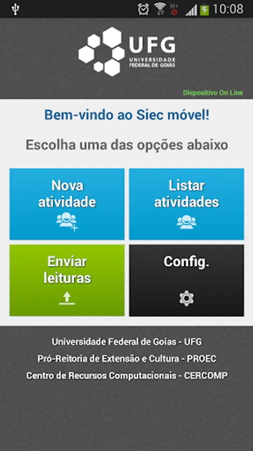 With the purpose of simplifying and automating the verification of attendance at events, the application was developed to be an extension of the system that manages extension and culture activities (SIEC) at the Federal University of Goiás.