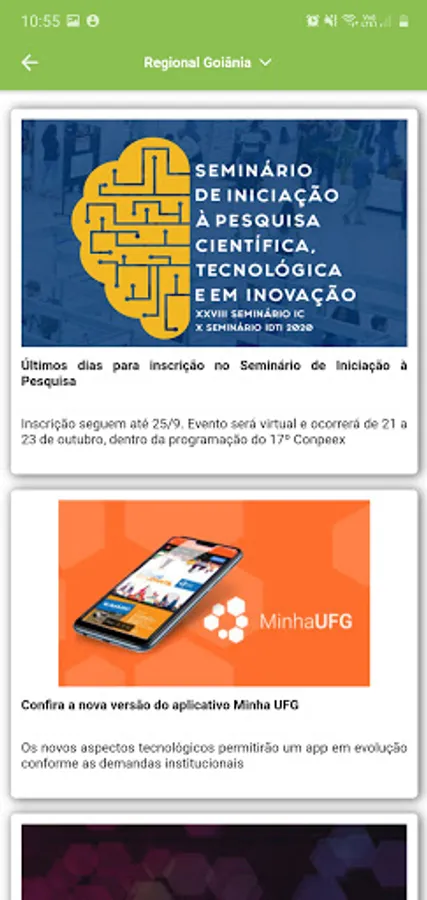 Simple and functional navigation, the MinhaUFG application provides access to services available online by the Federal University of Goiás.