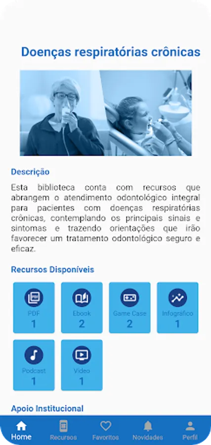 This library has resources that cover comprehensive dental care for patients with chronic respiratory diseases, covering the main signs and symptoms and providing guidelines that will favor safe and effective dental treatment.