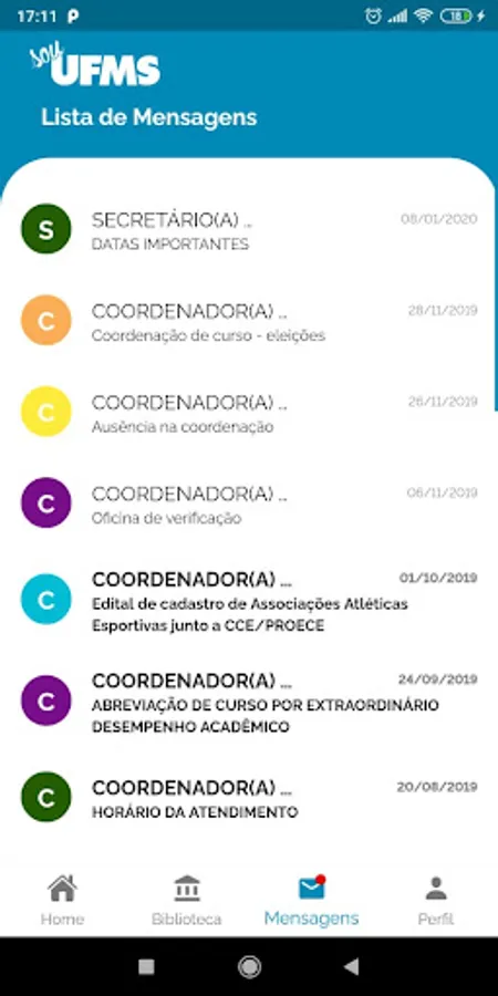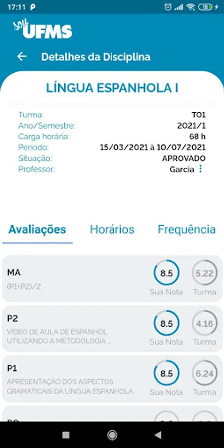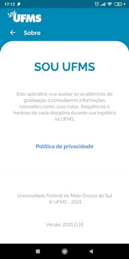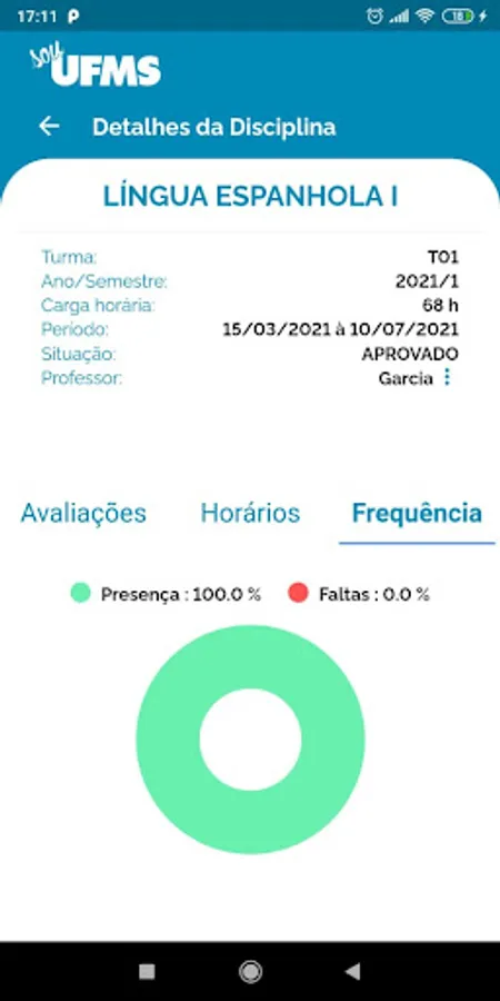 This application aims to help undergraduate students to consult relevant information such as their grades, frequencies and schedules for each discipline during their trajectory at UFMS.