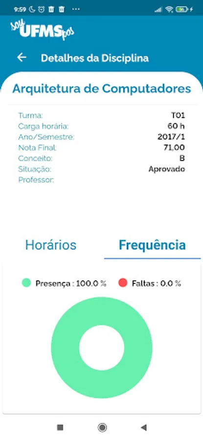 This application aims to help graduate students to consult relevant information such as their grades, frequencies and schedules for each discipline during their trajectory at UFMS.
