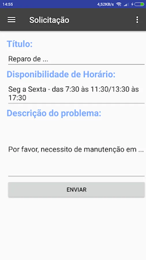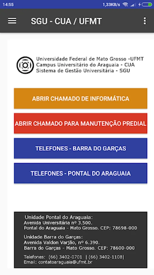 Available on the platform android access opening of maintenance services in T.I Building or outside the internal network of the Campus do Araguaia.
