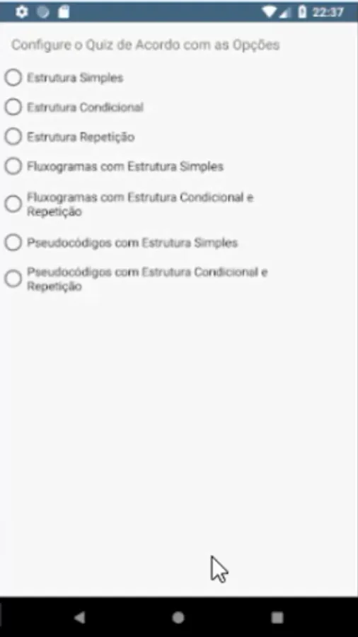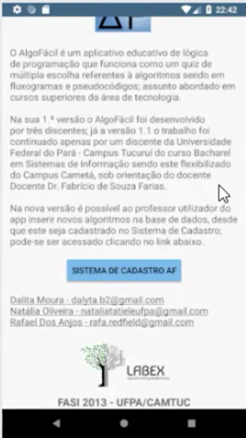 This application aims to help undergraduate students of Information Systems courses, Computer Science and Computer Engineering during the learning process of the algorithms discipline. This application was developed by students of the class of information systems UFPA-Tucuruí during the course of III Extension activities. In addition, this project is linked to Application Development Project for Mobile: Workshop for Students Public Network Cametá, UFPA PIBEX 2015. The project's goal is to teach and motivate students to develop applications for mobile platforms.