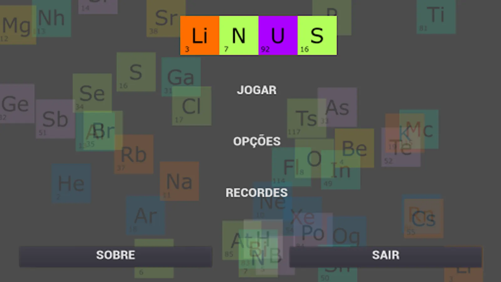 LINUS is an educational game that aims to improve the student's way of learning in relation to the electronic distribution of the discipline of Chemistry, so that we can bring more technology into the classroom, resulting in the student feel increasingly stimulated by the knowledge of Chemistry in the present day.