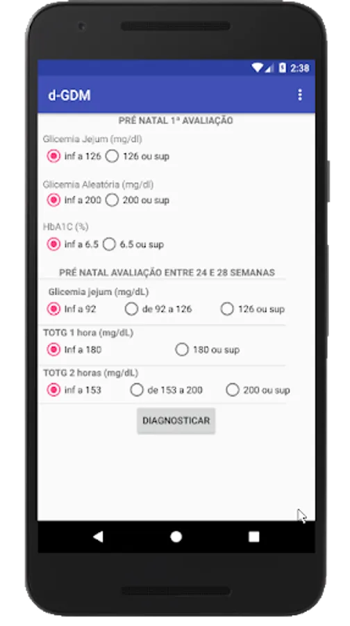 It is a free, intuitive application that uses the criteria for the diagnosis of Gestational Diabetes of the Brazilian Diabetes Association and the American Diabetes Association and the World Health Organization.