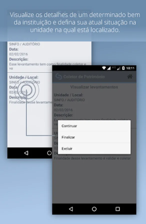 * CONTROL OF HERITAGE: The control of the institution's assets can now be done in a few steps using the features present on your mobile device.