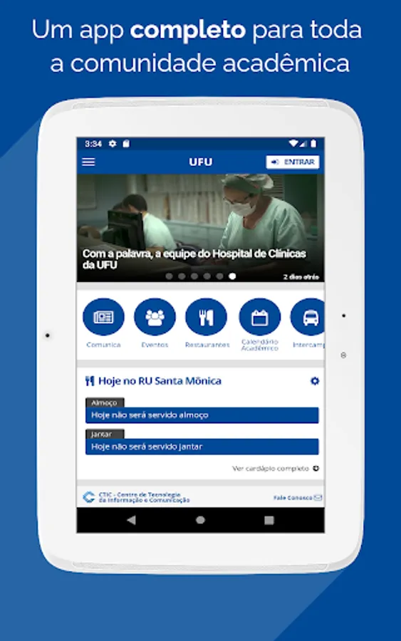 UFU Mobile is the first official application of the Federal University of Uberlândia (UFU) developed by the Center for Information Technology (CTI - UFU) to facilitate access to information for students, teachers, administrative technicians and other members of the UFU community.