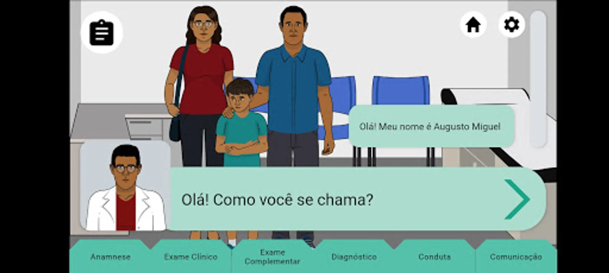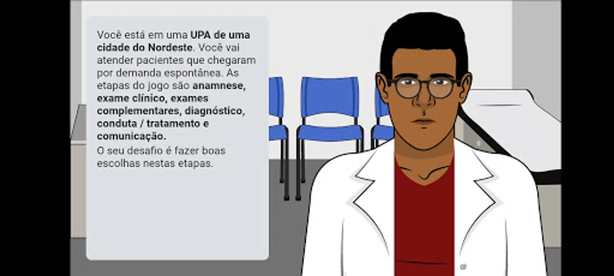 ClinicalCase is a clinical case simulation game that enables students and health professionals to provide assistance in an environment of the Unified Health System with virtual patients. The game's challenge is to know if the professional (player) will make good choices during the service, as all choices will impact the score. At the end of the game, the player can see performance details by clicking on the score bars for each stage and accessing pedagogical feedback.