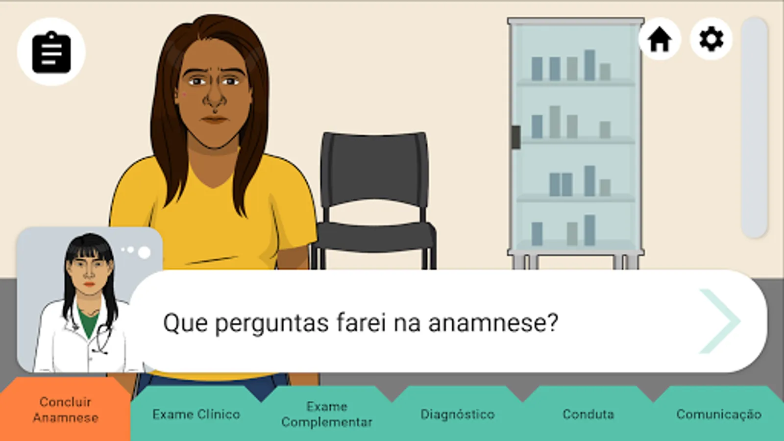 MedicalCase is a clinical case simulation game that enables students and health professionals to provide assistance in an environment of the Unified Health System with virtual patients. The game's challenge is to know if the professional (player) will make good choices during the service, as all choices will impact the score. At the end of the game, the player can see performance details by clicking on the score bars for each stage and accessing pedagogical feedback.