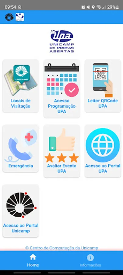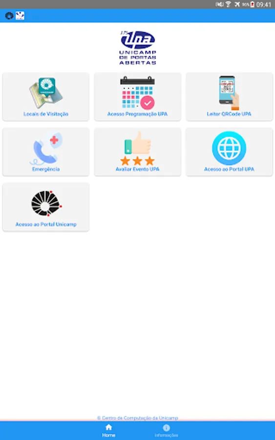 In this application there is also the option of access to the portals of the UPA, UNICAMP and CCUEC, thus facilitating the access to some essential information about the event and the university.