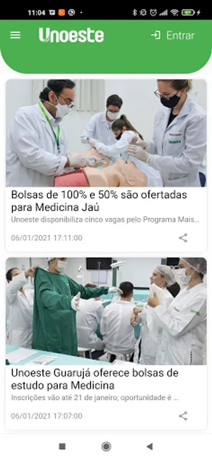 Application of Unoeste that provides functionality and university site content for students, teachers and external community.