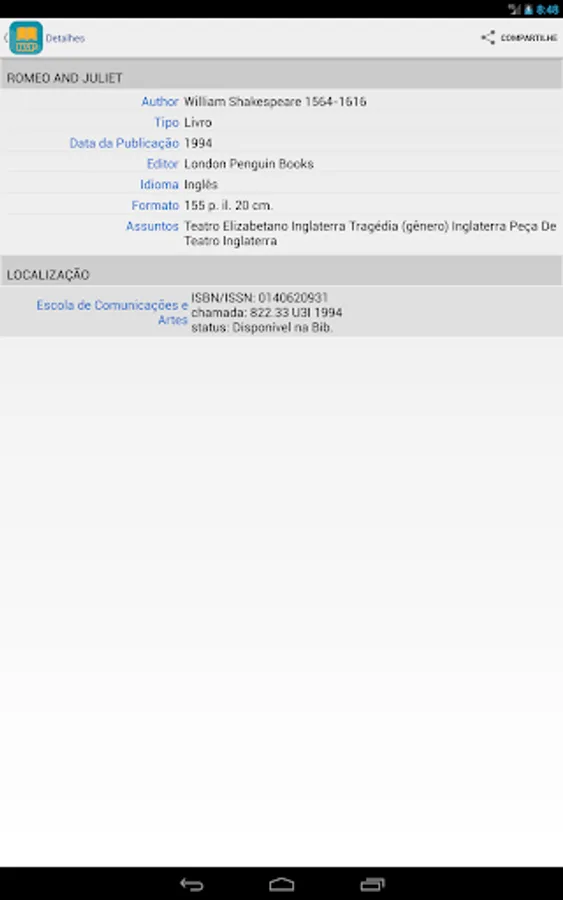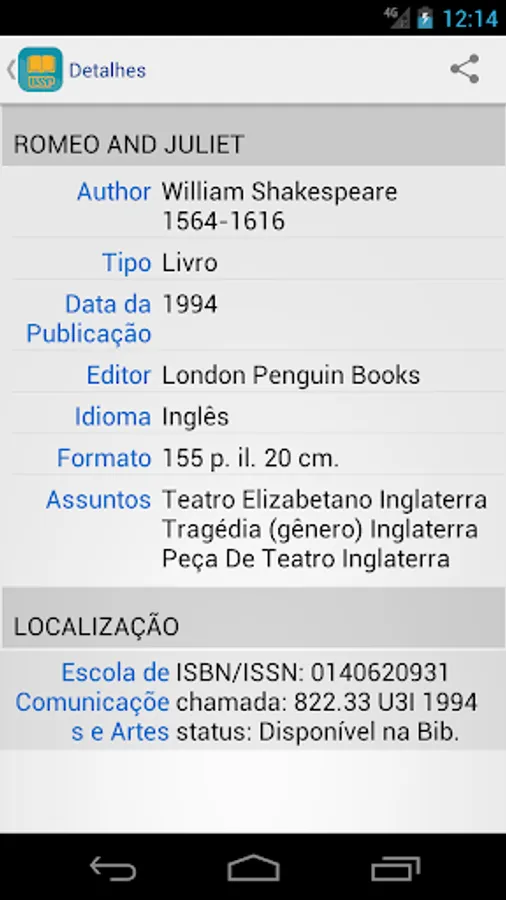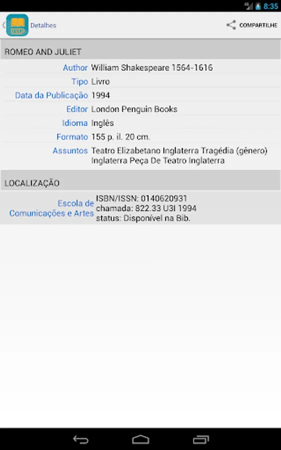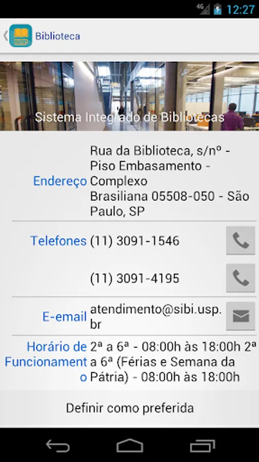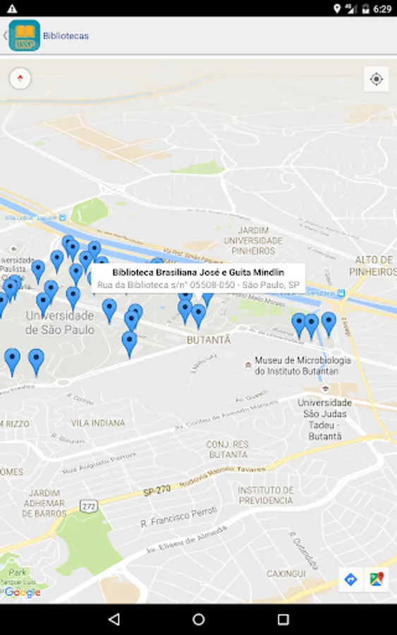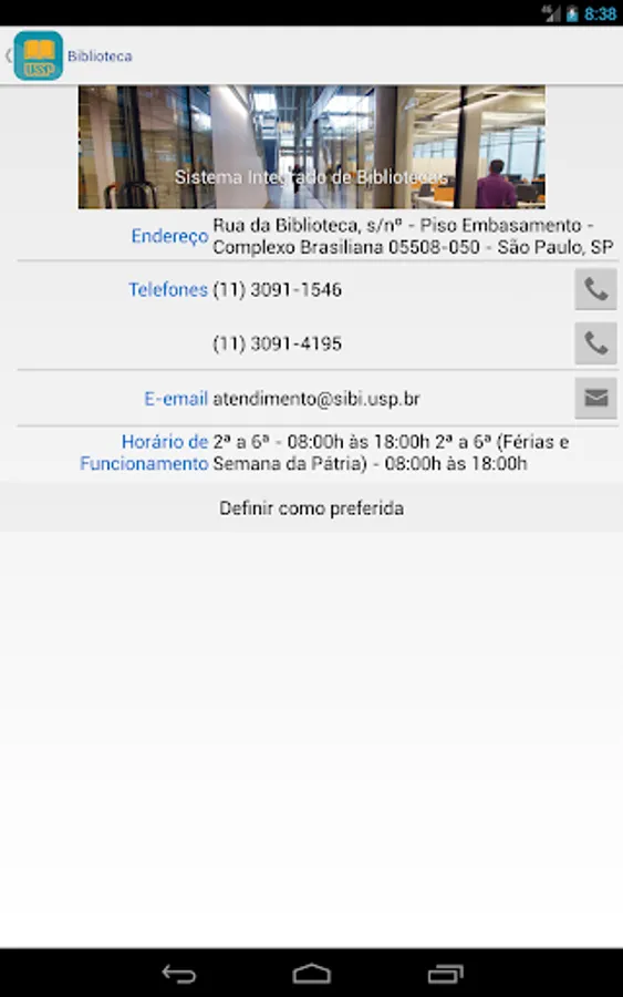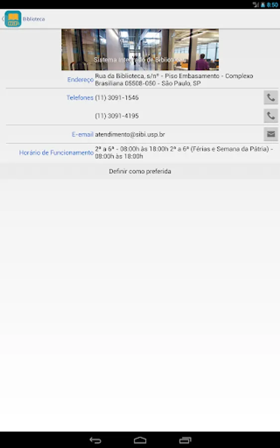 You can search the Integrated Library System (SIBi), University of São Paulo directly from your phone or tablet Find the location of a publication in the USP and check their availability. You can use the camera to scan a bar code and check for a publication in some library USP. Set wish lists, suggestions and references to the publications found. Export lists by email or to your Google Drive or DropBox. Find the location of a library USP through a map and check opening hours, telephone numbers and e-mail.