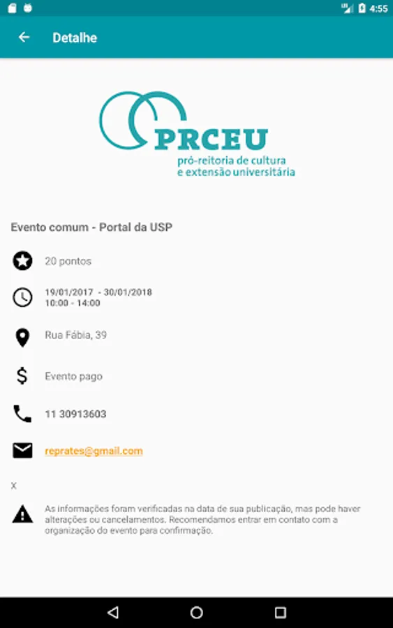 The Entreartes invites you to know and participate in various cultural activities that take place at USP. Select the desired activity and go to the place where it happens. There you will find a QRCODE of attraction. Make reading with your phone and earn points to exchange for gifts or to reverse in workload to be accounted for in the Academic Enrichment Activities - AAC. Define your profile of interest and participate in this play.
