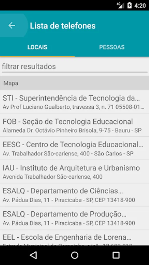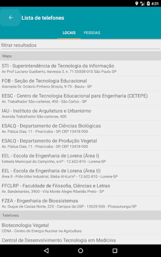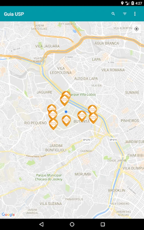 It's now easier to locate at USP. This guide will help you find the various schools, colleges and institutes of the University of São Paulo, as well as libraries, restaurants, banks and more. You can also find routes and positions of the two circulars of University City, in São Paulo, in addition to consulting the phones of people and places of the USP.
