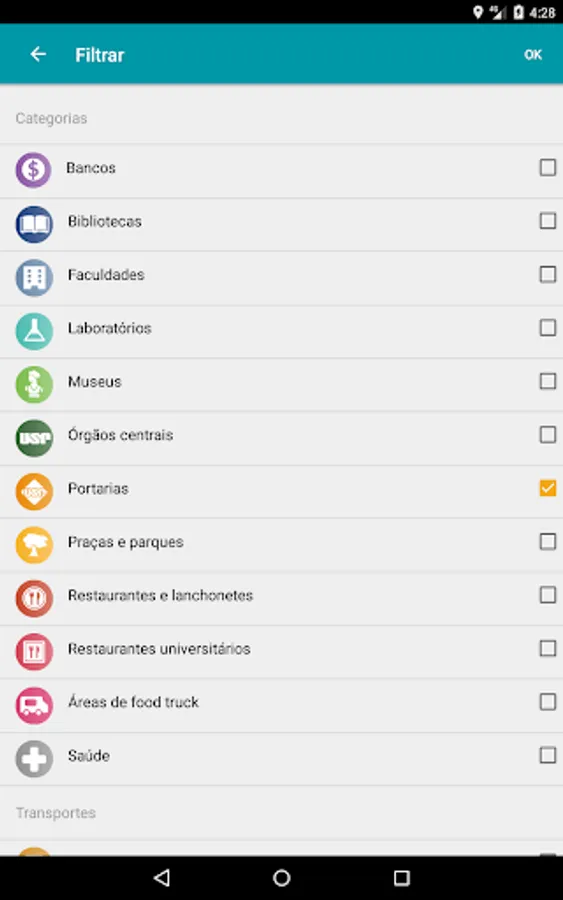 The position of coach in University City depends on service offered by SPTRANS. Continued use of this feature can impact the device's power consumption.