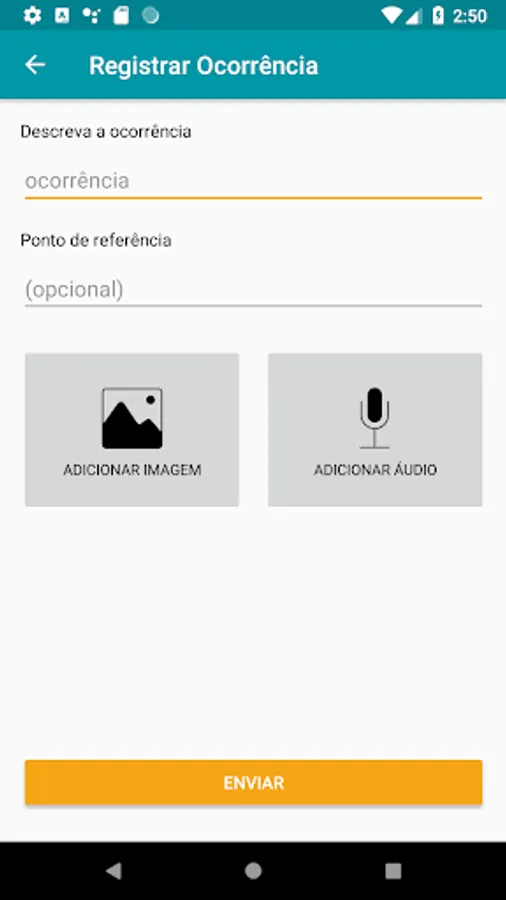 The application allows to make a conventional connection for free, or send a text reporting what happened, optionally with images and audios. The geolocation of the sending is carried out automatically by the application.