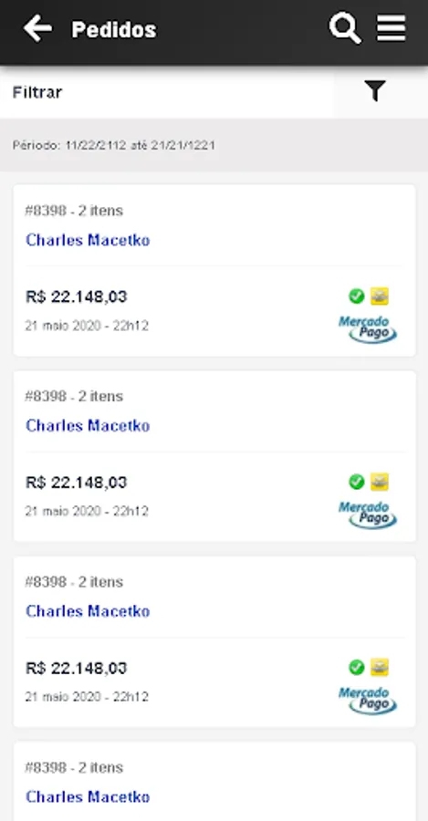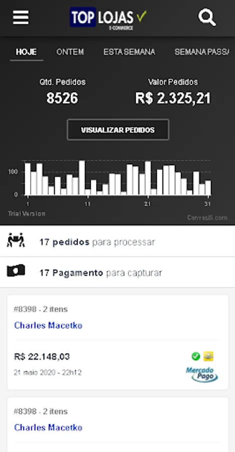 Application returning to TOPLOJAS Clients where you have access to a general summary of the orders received and can consult the details of the orders and contact your customers by phone and whatsapp