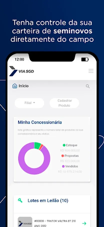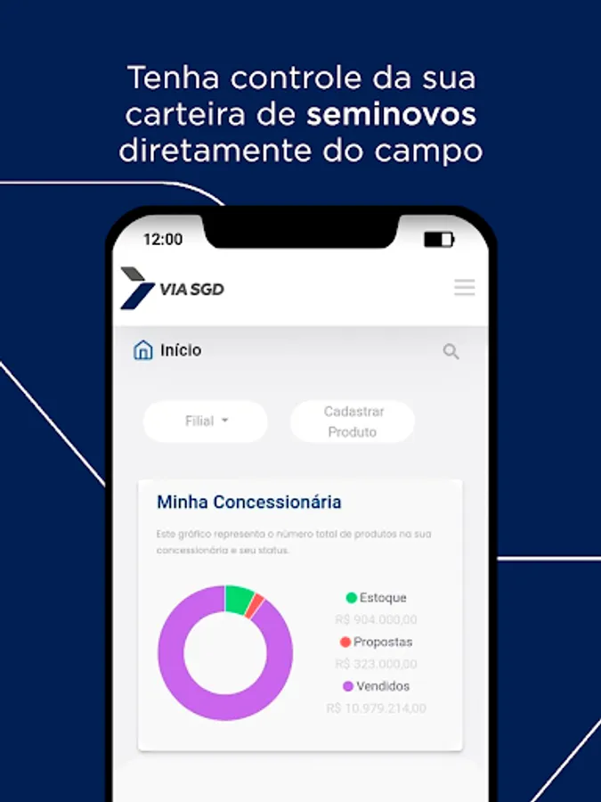 With Via SGD, managers and salespeople have many simple and intuitive resources to optimize their day-to-day activities. At the managerial level, quickly download complete and uncomplicated reports, accept proposals, track your financial receipts, assess the entry price of your used vehicles and monitor commercial operations through the opportunity cost.