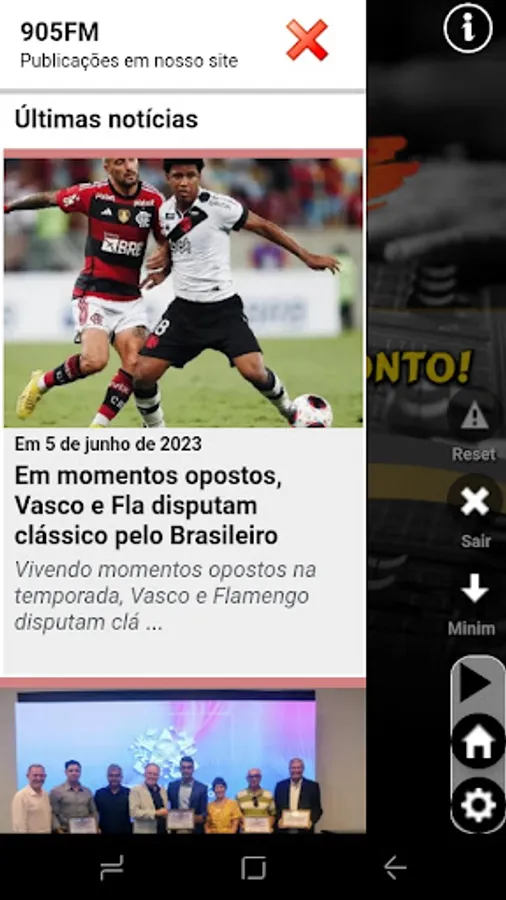 APP 905FM is the application of radio 90.5FM from Guaçuí ES, which makes it possible to listen to the radio and view exclusive news from the south of the State of Espírito Santo, in addition to Brazil and the world, broadcast on the website WWW.905FM.COM.BR.