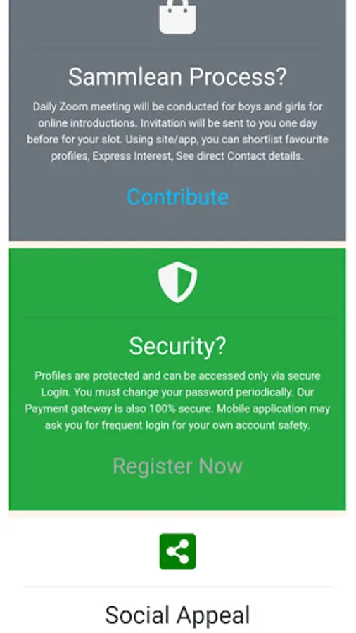 Registration to our matrimonial app is free of cost and overall process takes 5-10 mins and allows you to create a very impressive matrimonial biodata of your loved one which you can share as well. The applications allows you to upload upto 3 photos of the candidate, Job and Education details, Astrological details, Partner Preferences and Family details which make a perfect first impression when someone see your profile.