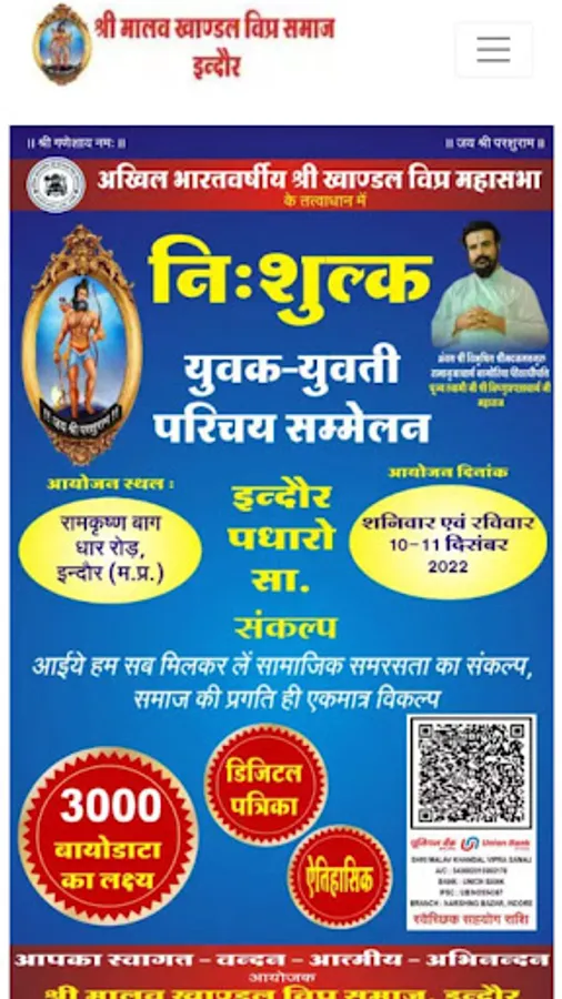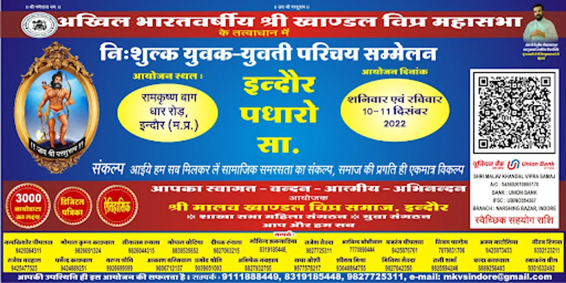 Khandal Vipra Parichay Sammelan - App is created by Shri Malva Khandal Vipra Brahmin Samaj Indore for the Khandelwal Brahmin community which allows all boys and girls belonging to the Khandelwal Brahmin samaj to use this as single largest Matrimonial platform all over India and world wide.